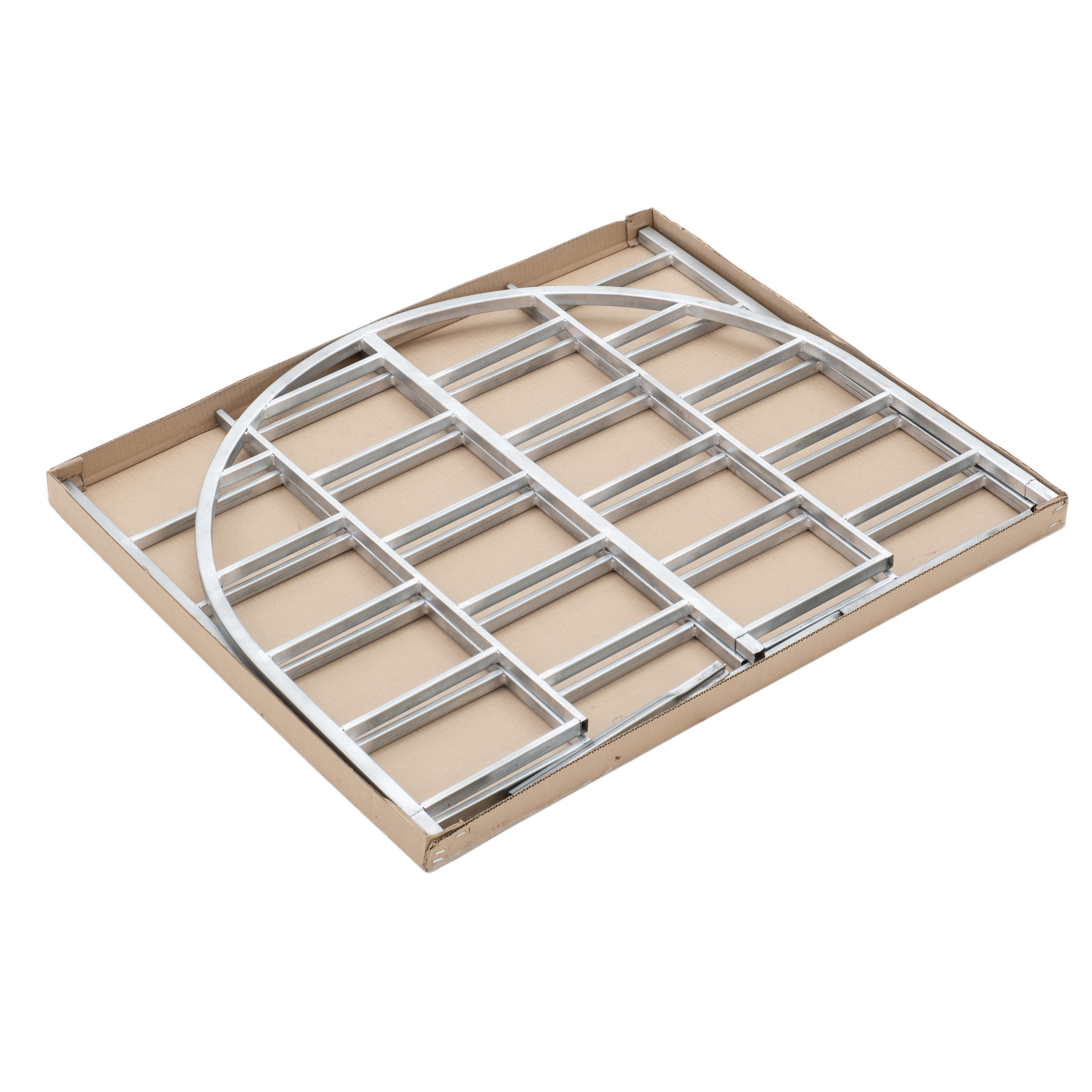 Внимание! Новая вариация товара: в верхней части изменен рисунок. Стало проще собирать: состоит всего их двух секций+ножки. Также новые размеры упаковки: 93 см*82 см*5 см. Вес с коробкой — 6,2 кг, вес без упаковки — 4,95 кг. Шпалера для цветов, вьющихся растений и винограда из оцинкованной трубы. Высота над землей — 150 см., ширина — 92 см. Высота вместе с ножками 172 см, длина ножек — 22 см.