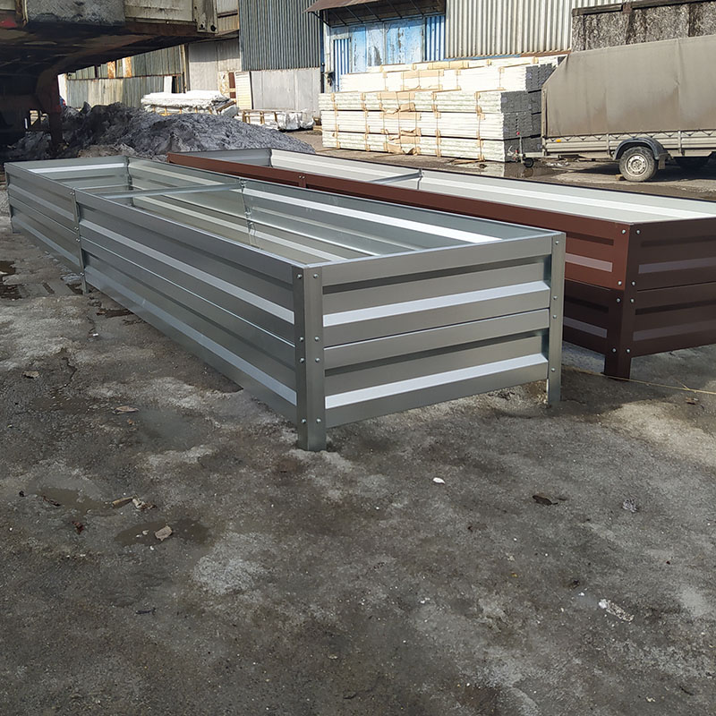Грядки изготовлены из оцинкованного металла толщиной 0,5 мм.
